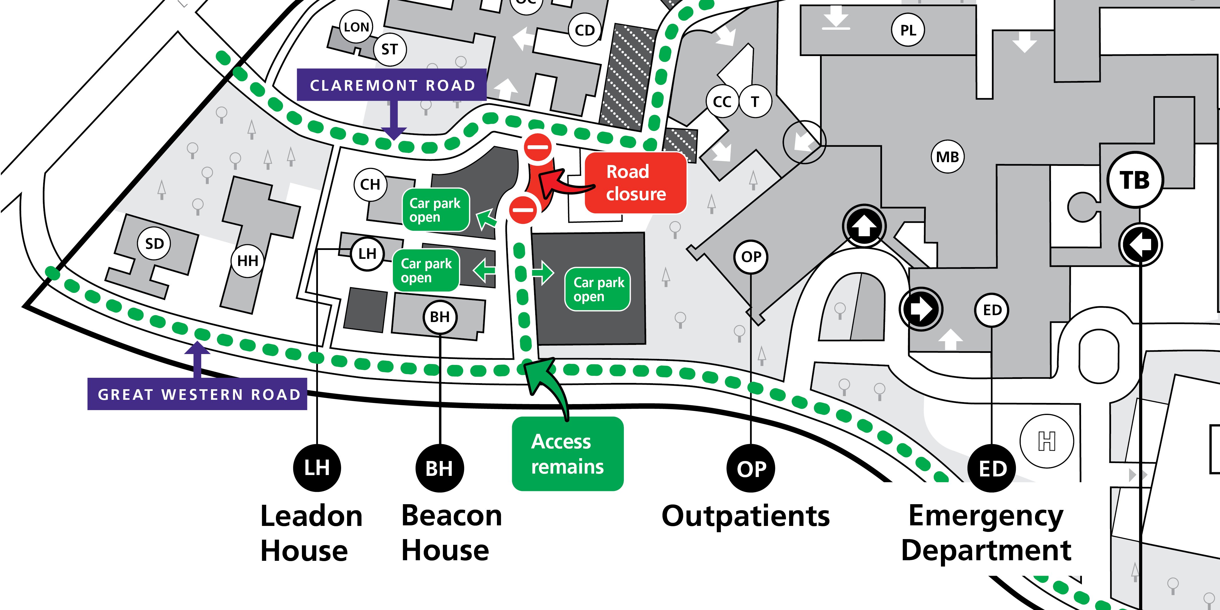 Access to staff car parks, Orchard car park, and the Apelonea building will be maintained at all times. Oxygen deliveries will also continue without disruption.